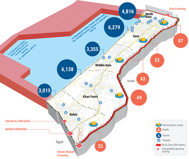 Israeli border forces have used tear gas and gunfire to control protestors, accusing Gaza’s rulers – Hamas – of using demonstrations as a cover for attacking troops and breaching the fence. The international community has criticized Israel for the use of excessive force, with over 200 protestor deaths per UN data.