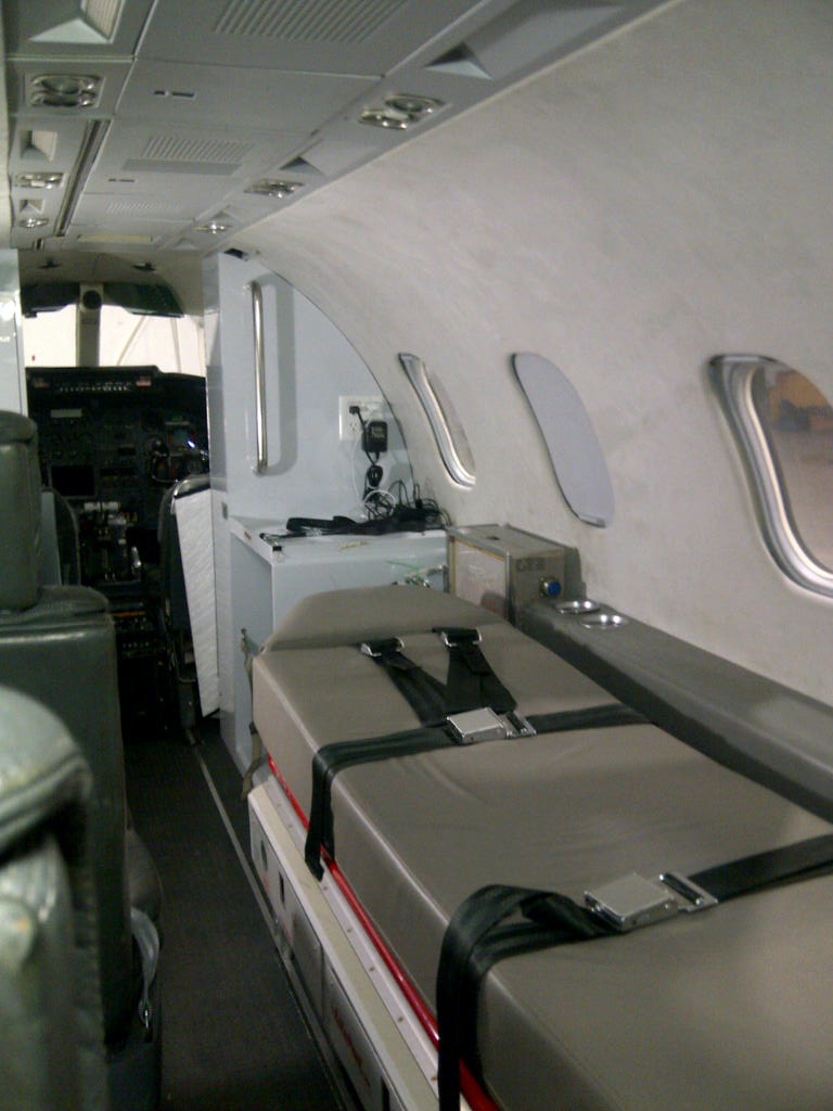 You’ll notice the plane is quite small, with room for only one of the patient’s traveling companions to accompany him or her on the plane